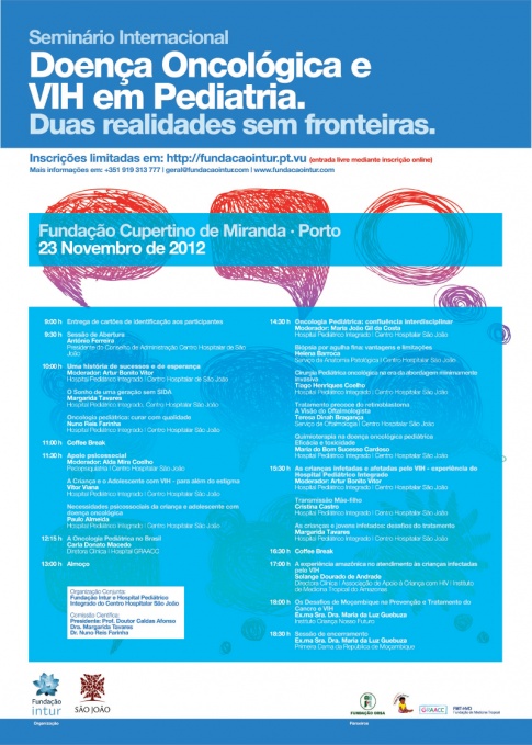 A Fundação Intur e o Hospital Pediátrico Integrado do Centro Hospitalar São João convidam todos os interessados a se inscreverem no Seminário Internacional Doença Oncológica e VIH na Pediatria, que terá lugar nas instalações da Fundação Cupertino de Miranda no próximo dia 23 de Novembro.